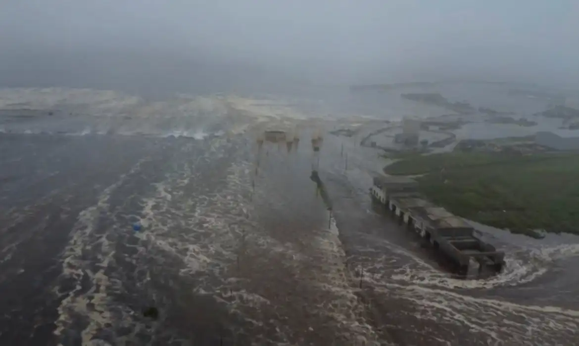 Imagens verificadas de drones mostraram que toda a costa da cidade estava submersa, com prédios mais altos e algumas instalações de armazenamento cercadas pela água.