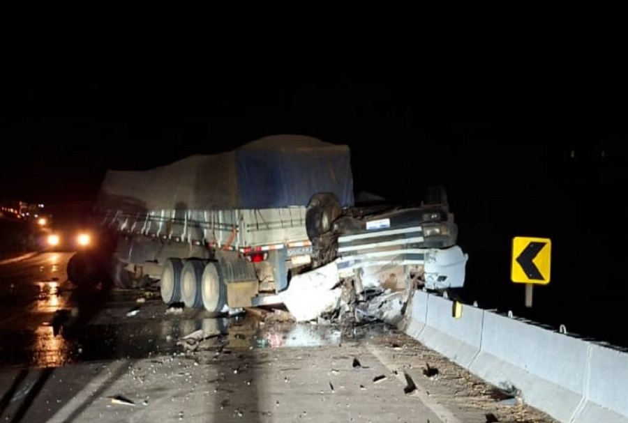 A vítima estava em uma das carretas e morreu ainda no local, presa às ferragens.