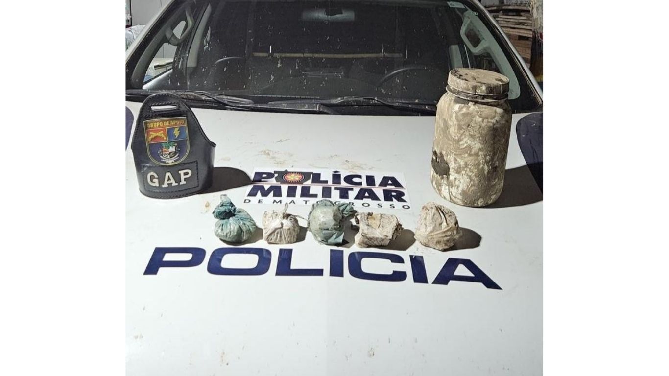 O homem revelou que adquiriu em Barra do Bugres. Ao ser detido, os policiais militares realizaram buscas pela casa e flagraram a suspeita, com outras porções de entorpecentes.