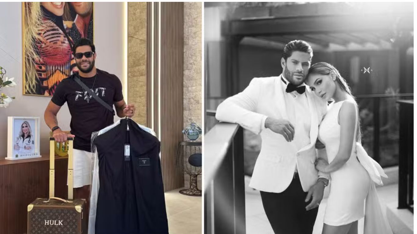 O jogador de futebol Hulk inicia nesta sexta-feira (3) o casamento de três cerimônias com Camila Ângelo, com quem vive um relacionamento desde 2019. Os dois já são casados no civil, mas agora vão festejar a data ao lado de amigos e familiares.